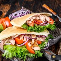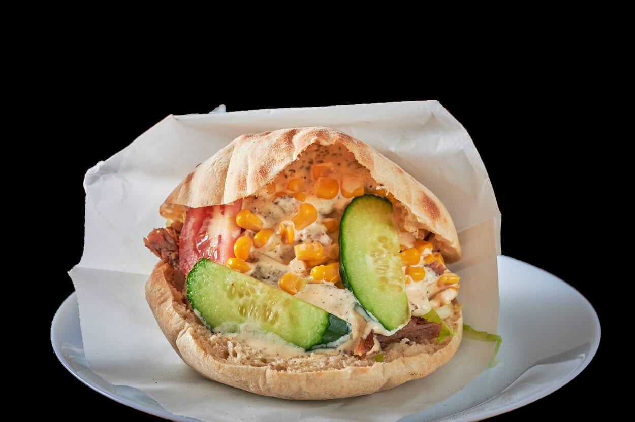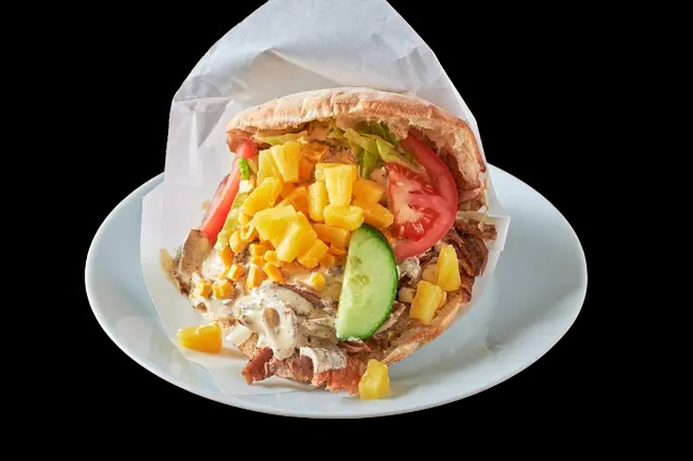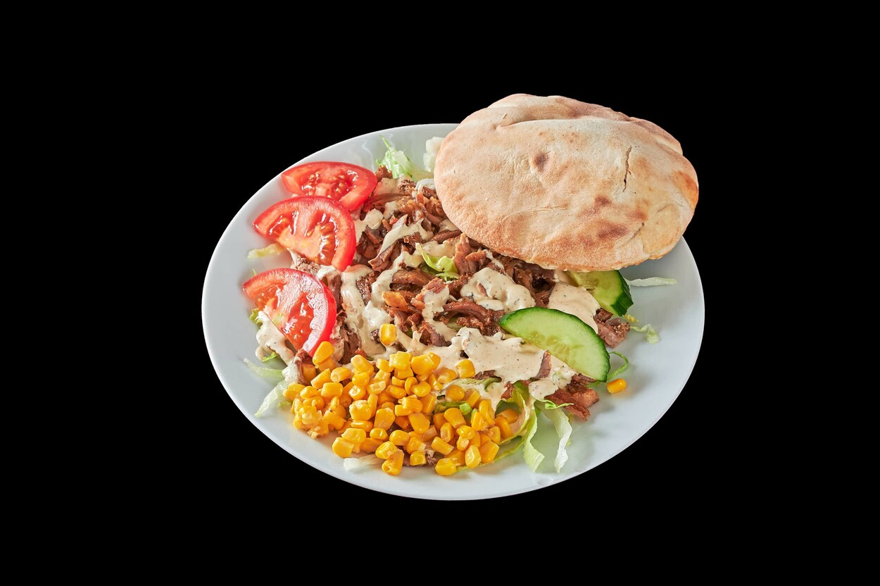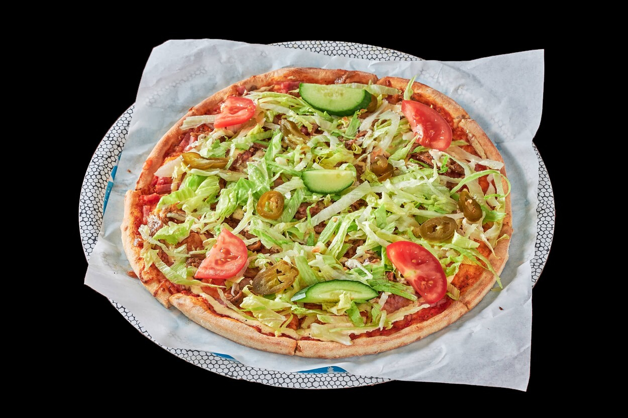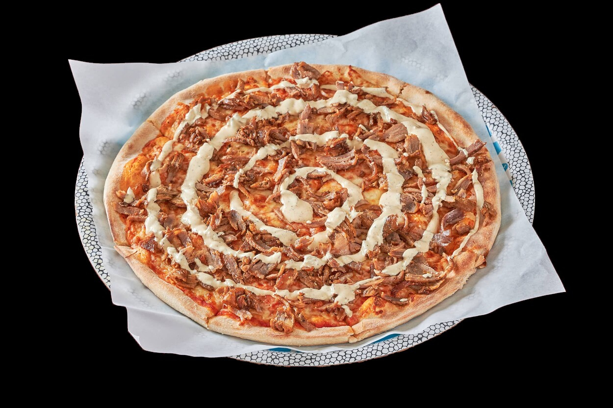 Med tomatsaus, ost, kebabkjøtt...