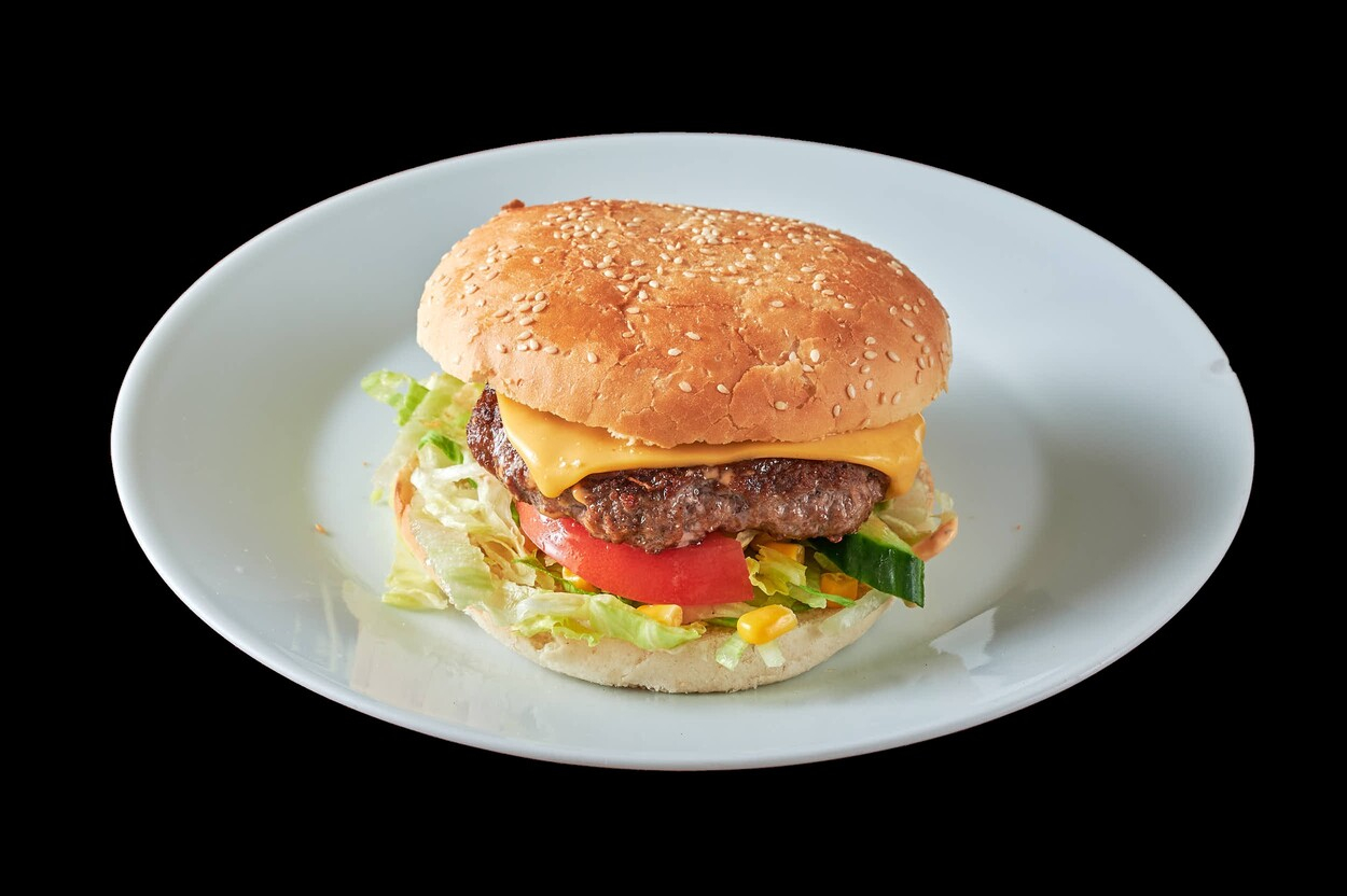 Med tomatsaus, ost, biff,...