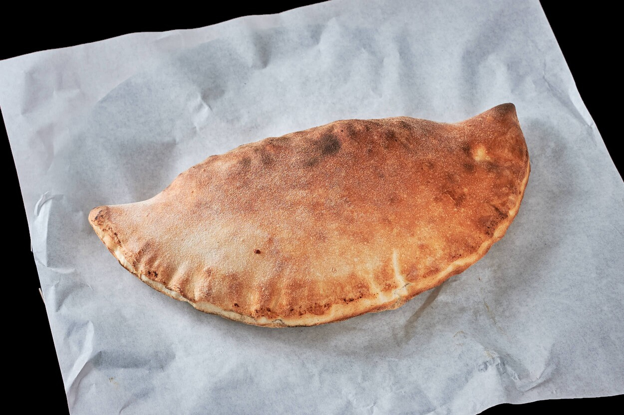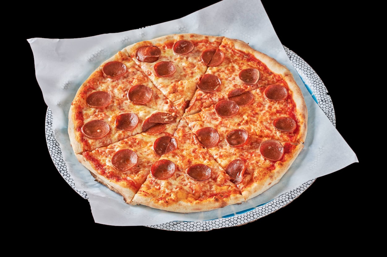 Med tomatsaus, ost, løk, pepperoni og...