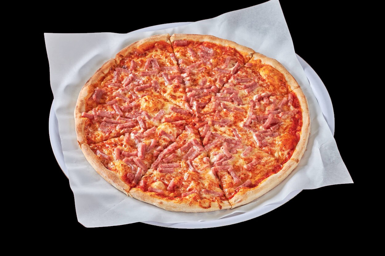 Med tomatsaus, ost, skinke og...